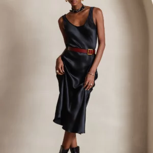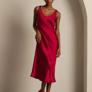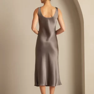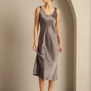 100% mulberry Silk charmeuse Sleeveless U Neck Midi Dress