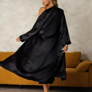 • Coordinating robe designed with wide sleeves and a flowing hemline for an added layer of sophistication