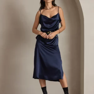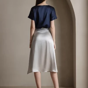 Material: Made from a 19 momme silk blend of 95% mulberry silk and 5% spandex, offering gentle stretch for a flattering, body-adapting fit.