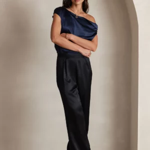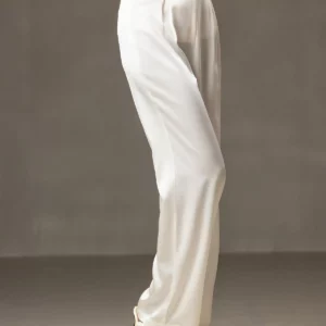 Details: Crafted from luxurious stretch silk, these full-length wide-leg pants combine a high-rise waist with elegant draping and a discreet side zip closure. The soft natural sheen and thoughtful tailoring make them versatile enough for elevated everyday wear while remaining polished enough for more refined occasions.