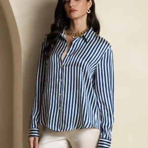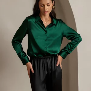 mulberry Silk 19Momme Long Lapel Collar Women’s Shirt with Button Up Design