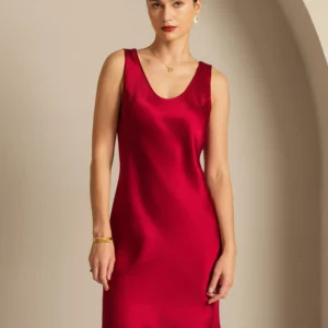 Crafted from pure mulberry silk, this sleeveless nightgown features a soft U-neck and a clean straight silhouette. Lightweight, breathable, and refined, it’s perfect for relaxed evenings and elegant everyday wear.
